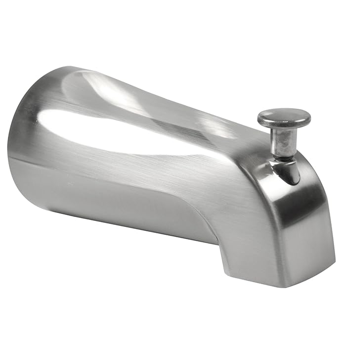 - The drain pop-in is finished in a stainless steel colorway.